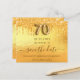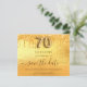 A girly and trendy Save the Date card for a 70th birthday party. A modern faux gold metallic looking background decorated with faux glitter drips, paint dripping look. Personalize and add a date and name. The text: Save the Date is written with a large trendy hand lettered style script. Number 70 with a balloon style font.