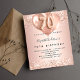 For an elegant 70th birthday. A rose gold faux metallic looking background. Decorated with rose gold, pink faux glitte, sparkles and balloons. Personalize and add a name, and party details. The name is written with a hand lettered style script, number 70 with balloon style fonts.
