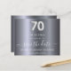 An elegant Save the Date card for a 70 birthday party. A modern faux silver metallic looking background. Personalize and add a date and name/age. The text: Save the Date is written with a large trendy hand lettered style script. Number 70 with a balloon style font.
