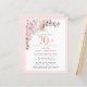 Soft blush pink frame with an elegant pink rose floral arrangement in the upper left corner. 70th is written in a beautiful rose gold texture. Pretty and feminine design.