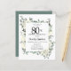 Elegant 80th birthday party invitation features a botanical frame of white flowers and deep green leaves. The birthday person's name is written in a traditional script text. All of the text can be easily edited to create just the right celebratory tone.