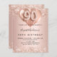 For an elegant 90th birthday. A rose gold gradient background. Decorated with rose gold, pink faux sparkles and balloons. Personalize and add a name, and party details. The name is written with a hand lettered style script, number 90 with balloon style fonts.