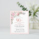 Soft blush pink frame with an elegant pink rose floral arrangement in the upper left corner. 90th is written in a beautiful rose gold texture. Pretty and feminine design.