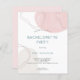 A budget price SMALLER 4.5” x 5.6” alternative. Available in a SEMI-GLOSS 110 lb CARD STOCK which is the default option (thicker for invitations), OR a SATIN FINISH 80 lb THINNER PAPER STOCK (ideal for enclosures). Envelopes are an optional extra and are slightly larger than the card size. Modern abstract shapes and lines in pretty pastel pink and cream with wavy lines decorate the top right and bottom left corners, and stylish minimalist typography is in the middle which is easily personalised to the details of your Bachelorette Party. You can change the background colors on both sides, as well as the text to a different color if you so wish via the Click to Customize Further option.