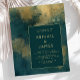 This elegant, moody wedding invitation features a modern abstract teal and gold watercolor background. Customize the gold-colored text in stylish fonts on a dark teal rectangle. The abstract design is repeated on the back of the card.