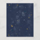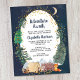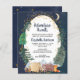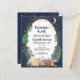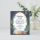 Budget-friendly rustic virtual baby shower invitation featuring a cute illustration of woodland animals with their tent camping in the mountains and forest, an overlay of gold stars and moon in a nighttime sky and "Adventure Awaits" and the mother-to-be's name in a dark midnight blue script. Easily personalize the virtual shower details, including an online link or text number or email address to obtain the online link.