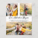 These engagement announcement budget cards on cheaper paper are perfect for when you don’t have a wedding date set, but you can’t wait to share the good news with your friends and family! There are 3 photos of the happy couple on the front, with the announcement in a trendy brush script for a rustic adventure feel, and a fourth photo on the back.