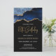 This trendy 18th birthday invitation features a watercolor image of an agate geode in shades of blue with faux gold highlights. The words "18th Birthday" appear in faux gold glitter in decorative modern handwriting font. Customize it with the name of the honoree in gold colored text and the details in white. The same blue agate image appears on the reverse side.