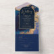 Budget Agate Blue Gold Wedding Invite QR Code RSVP