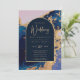 Budget Agate Blue Gold Wedding Invite QR Code RSVP