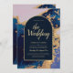 Budget Agate Blue Gold Wedding Invite QR Code RSVP