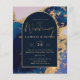 Budget Agate Blue Gold Wedding Invite QR Code RSVP Flyer