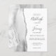 The left-hand edge of this elegant modern wedding invitation features a gray and white watercolor agate border trimmed with faux silver glitter. The customizable text combines handwriting, copperplate and italic fonts in charcoal gray on a white background. The reverse side features a matching gray, white and silver agate design. NOTE: Envelopes are not automatically included with these budget invitations, so please remember to choose the "white envelopes" option!