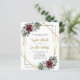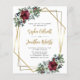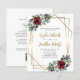Budget All in One Burgundy Amaryllis Pine Gold QR Code Floral Wedding Invitation... Our affordable "front and back" floral winter wedding invitation features a gold ink geometric frame embellished with bouquets of burgundy amaryllis, white anemones, wispy pine branches and green holiday foliage bordering your personalized wedding invitation text. The back of the invitation contains all of the details you would typically see on separate cards in the wedding packet. This modern style wedding invitation was designed to be both elegant and budget conscious... not to mention time-saving. On the back there is also a QR code graphic you can easily replace with your own QR code... **you can generate your own code** by entering your wedding website URL on the personalization template. All example text can be easily revised with your own information on the same "personalize this" template.