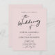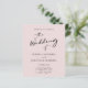 Trendy All in One Budget Modern Black Calligraphy Script Blush Pink Wedding Invitation... Our trendy affordable "front and back" blush and black wedding invitation features chic modern calligraphy script combined with serif and sans serif text for a simple classic wedding invitation. The back of the invitation contains all of the details you would typically see on separate cards in the wedding packet. This modern style wedding invitation was designed to be both trendy and budget conscious... not to mention time-saving for busy brides-to-be. On the back there is also an example QR code graphic you can replace - in seconds - with your own QR code right on the personalization template. All example text (aside from the graphic calligraphy elements) can be easily revised with your own information on the personalization template.