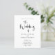 Budget All in One with Details Modern Calligraphy Black and White Wedding Invitation... Our unique affordable "All in One" black and white wedding invitation features handwriting black calligraphy script combined with serif and sans serif text for a simple and elegant wedding invitation. The BACK of the invitation contains all of the DETAILS you would typically see on separate cards in the wedding packet, including reception time and venue, accommodation options, wedding website, RSVP and registry information. This modern style wedding invitation was designed to be both elegant and budget conscious... not to mention time-saving. All example text (aside from the graphic calligraphy elements) can be easily revised with your own information on the personalization template.