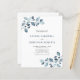 Budget Elegant All in One Dusty Blue Eucalyptus Wedding Invitation... Our unique affordable "All in One" botanical wedding invitation features elegant watercolor eucalyptus branches in shades of dusty blue bordering your invitation text. The back of the invitation contains all of the details you would typically see on separate cards within the wedding packet. This modern style front and back wedding invitation was designed to be both elegant and budget conscious... not to mention time-saving. On the back there is also a QR code graphic template you can replace with your own code (or delete if you don't plan to use one... also - don't forget to delete the text that refers to the QR code information). All example text can be easily revised with your own information on the personalization template.