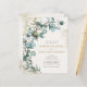 Budget All in One QR Code RSVP Eucalyptus Greenery Gold Glitter Wedding Invitation... Our botanical "front and back" wedding invitation features an arrangement of beautiful watercolor eucalyptus leaves bordering your invitation text against a creamy white background. Gold glitter dust adds a luxurious elegant look to this affordable invitation. The back of the invitation contains all of the details you would typically see on separate cards within the wedding packet. This modern style all-in-one wedding invitation was designed to be both elegant and budget conscious... not to mention time-saving. The example wedding website QR code and all example text can be easily revised with your own information on the personalization template.