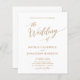 Budget All in One Classic Gold Calligraphy Wedding Invitation with Details on Back... Our unique affordable "All in One" gold on white wedding invitation features gold ink calligraphy script combined with serif text for a simple classic and elegant wedding invitation. The BACK of the invitation contains all of the DETAILS you would typically see on separate cards in the wedding packet, including reception time and venue, accommodation options, wedding website, RSVP and gift registry information. This modern style wedding invitation was designed to be both elegant and budget conscious... not to mention time-saving. On the back there is also a QR code graphic template you can replace with your own code (or delete if you don't plan to use one). All example text (aside from the graphic calligraphy elements) can be easily revised with your own information on the personalization template.