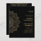 Budget All in One Gold Mandala Monogram Elegant Black Wedding Invitation with Details on the Back... Our affordable elegant "All in One" gold mandala on black wedding invitation features an intricate gold mandala drawing attention to your invitation text and bride and groom monogram initials. The BACK of the invitation contains all of the DETAILS you would typically see on separate cards in the wedding packet, including reception time and venue, accommodation options, wedding website, RSVP and gift registry information. This modern style wedding invitation was designed to be both elegant and budget conscious... not to mention time-saving. All example text can be easily revised with your own information on the personalization template.