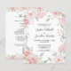 Budget All in One Pink Roses Sage Greenery Wedding Invitation... Our budget "All in One" floral wedding invitation features an array of pastel pink roses and leafy sage greenery framing your invitation text on front of the card. The back of the card, bordered with pink roses on top and bottom, contains all of the details you would typically see on separate cards in the wedding packet. This modern style wedding invitation was designed to be both elegant and budget conscious... not to mention time-saving. On the back there is also a QR code graphic template you can replace with your own code (or delete if you don't plan to use one). All example text can be easily revised with your own information on the personalization template. PLEASE NOTE: "Budget" card paper is not the same as the traditional flat card invitations. Our budget cards are 4.5 x 5.6 inches made of semi-gloss 110 lb paper compared to traditional wedding invitation flat cards at 5 x 7 inches in matte paper at 120 lb weight. Also, the budget cards do not automatically come with envelopes, as do the traditional invitation cards, but you can purchase them on the same page at checkout if you wish. This all in one design is also available on a traditional 5x7 wedding invitation card.