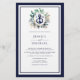 Budget wedding invitation. Rustic beach wedding design combining nautical elements (navy anchor, knot, starfish) with unique and original watercolor wreath of eucalyptus leaves and greenery. Bride’s and Groom’s monograms. Navy lettering. Ideal for beach wedding, nautical wedding, destination wedding, summer wedding, rustic wedding.