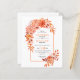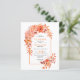 BUDGET Arch and orange flowers QR code fall wedding invitation. This stylish wedding invitation showcases a boho arch decorated with bright orange flowers and green leaves, resulting in a striking and captivating design. The mix of dalia and rose blooms in various shades of orange brings a romantic and elegant touch to the overall aesthetic. The reverse side of the invitation is kept minimal with a pristine white backdrop, ensuring that the attention stays on the gorgeous floral arch. Furthermore, the incorporation of a QR code for online RSVPs adds a contemporary and practical element to this affordable wedding invitation.
