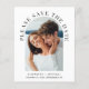 Modern budget-friendly wedding save the date announcement featuring your photo in an arched frame surrounded by "Please Save The Date" in elegant typography. Under your photo, add your first names, wedding date and location. On the reverse side, personalize your save the date details in simple typography and input your wedding website URL address to create a scannable QR code for your guests to easily visit your website.