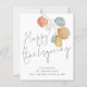 Artsy Leaves Script Happy Thanksgiving Card. A budget price SMALLER 4.5” x 5.6” alternative in a SEMI-GLOSS 110 lb CARD STOCK, similar to the thickness of a postcard. Envelopes are slightly larger than the card size. Trendy Watercolor leaves in autumnal browns, yellow and Dusty blue are to the right, with trendy handwriting style set typography for Happy Thanksgiving. Easily personalise your names and greeting at the bottom. A coordinating blue is on the back.