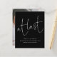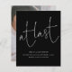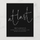 Budget At Last Black Script Photo Engagement Announcement. A budget price SMALLER 4.5” x 5.6” alternative. Available in a SEMI-GLOSS 110 lb CARD STOCK which is the default option (thicker for invitations), OR a SATIN FINISH 80 lb THINNER PAPER STOCK (ideal for enclosures). A stylish design to announce your exciting news, in classic black and white, with an elegant informal style set script for At Last at the top half and easily personalise the rest of the text. Replace the sample image on the back with your photo.