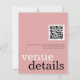 A value for money BUDGET alternative on a smaller size 4.5 x 5.6” semi-gloss 110lbs weight, which is of similar thickness to a postcard (however is not suitable to use as a postcard.). PLEASE NOTE there is ONE invite per sheet. At Last QR Code Dusty Rose Text Engagement Party Announcement and Invitation. A stylish typographical design, with At Last in large typography rotated and to the right hand side at the top, in white with black for the letter "s" on a background of pale dusty rose pink. The background color can be changed on each side if you wish via Customize further. This version of the invitation is with parties in mind taking place in a hotel or restaurant (or any venue with a website), replace the QR code on the back with a QR code to their website to make it convenient for guests to find directions etc. You can create QR codes for free online. Search “QR code creator” and lots of options come up to create for free. You can also delete the QR code and text on the back if not required via customize further.