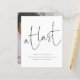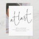 Budget At Last Script Photo Engagement Announcement. A budget price SMALLER 4.5” x 5.6” alternative. Available in a SEMI-GLOSS 110 lb CARD STOCK which is the default option (thicker for invitations), OR a SATIN FINISH 80 lb THINNER PAPER STOCK (ideal for enclosures). A stylish design to announce your exciting news, with an elegant informal style set script for At Last at the top half and easily personalise the rest of the text. Replace the sample image on the back with your photo.