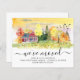 Modern Cute Watercolor Autumn Fall Forest Country Cabin House Trees Mountains We've Moved New Home Change of Address Moving Announcement
