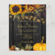 Rustic traditional harvest fall sunflowers, autumn flowers and pumpkin BUDGET wedding invitation on a dark brown barn wood like background with string lights. ++++++++++++++ +++++++++ Ideal for your autumn fall elegant barn outdoor backyard weddings. ++++++++++++++++ PLEASE READ THIS BEFORE PURCHASING! This is a budget affordable card printed on a FLYER. ++++ Please note that BUDGET PAPER IS THIN - You can upgrade to have this card printed on cardstock ++++ ENVELOPES NOT INCLUDED. +++ Double-check all the information and spelling of your text because you will receive exactly what you see - no one else will check anything before printing. ++++ This card is designed for size 4.5" x 5.6". In the case you choose another size of the card and text goes outside page, everything needs to be fixed before adding the product to cart. Please ask Live Design Service for help.