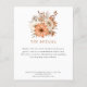 Budget Autumn Florals Wedding Information Details. A budget price SMALLER 4.5” x 5.6” alternative. Available in a SEMI GLOSS 110 lb CARD STOCK which is the default option (recommended for invitations), OR a SATIN FINISH 80 lb THINNER PAPER STOCK (ideal for enclosures). Envelopes are an optional extra and are slightly larger than the card size. Autumnal colored florals and foliage is at the top and then the text which you can easily personalise. A coordinating color is on the back which you can change if you wish via the customise further option.