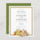Budget Modern Framed Autumn Olive Green and Orange Pumpkin Floral Wedding Rehearsal Dinner QR Code Invitation. The font color and type can be changed via the edit menu. You can also change text and background colors on either side if you wish. A value for money smaller 4.5 x 5.6 inch alternative defaulted to the semi gloss option which is recommended for invitations and is a similar thickness to a postcard. The satin option is much thinner.