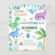 Cute Baby Dino Dinosaur Forest Blue Birthday Invitation