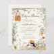 Baby in Bloom Boy Shower Cream Invite. A budget friendly SMALLER 4.5” x 5.6” alternative. Available in a SEMI GLOSS 110 lb CARD STOCK or a SATIN FINISH 80 lb THINNER PAPER STOCK. Envelopes are an optional extra. This vintage style design has a cute bunny in a hat peaking from behind florals and foliage to the bottom right, and a sweet baby boy's outfit hanging from the branch of the tree at the top on a background of cream. You can easily personalise all the text to your own requirements. A coordinating colored background is on the back. You can also change the fonts and text colors if you wish via the Click to Customize Further option as well as the background colors of either side.