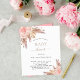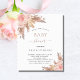 For a modern boho style baby shower. A stylish white background. Decorated with rose gold and pink florals, roses and pampas grass. Personalize and add a name and party details.