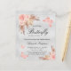 For a modern boho style baby shower. A faux silver looking background. Decorated with rose gold and pink florals, roses, pampas grass and butterflies. Personalize and add a name and party details.
