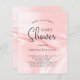 Elegant, classic, glamorous and girly style baby shower invitation, celebrating a baby girl. Blush pink satin,silk looking background. Personalize and add a name and party details.