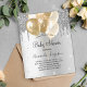 For a baby shower, gender neutral. A faux silver background. Decorated with faux silver glitter drips, paint dripping look and gold balloons. Personalize and add the name of the mom to-be and party details. The name and the text: Baby Shower are written with a hand lettered style script