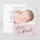 Minimalist stylish chic baby girl shower modern elegant hand lettered calligraphy script BUDGET AFFORDABLE personalized thank you card template with your photo, custom text, and signature. ++++++++++++++++++++++++++++++++++ PLEASE READ THIS BEFORE PURCHASING! This is a budget affordable card printed on a paper sheet (each sheet has one card). ++++ For the best rapport price-quality, our advice is to choose the Semi-Gloss paper type (it is thick enough to be used for stationery) ++++ If you need envelopes, choose the ENVELOPE OPTION. +++ Double-check all the information and spelling of your text because you will receive exactly what you see - no one else will check anything before printing. ++++ This card is designed for size 4.5" x 5.6". In the case you choose another size of the card and text goes outside page, everything needs to be fixed before adding the product to cart. Please ask Live Design Service for help.