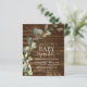 Budget Eucalyptus Greenery Succulent Botanical Watercolor Spring Gender Neutral Baby Boy or Baby Girl Baby Sprinkle Shower Invitations on rustic wood country outdoor background - includes beautiful and elegant script typography with modern botanical leaves and greenery for the special Mother to Be celebration.