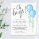 This budget couple's twin boy's Baby Shower Invitation is decorated with watercolor blue balloons and green eucalyptus and says "Oh Boys!"