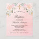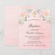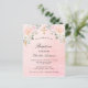 A modern, elegant baptism, celebrating a baby girl. A blush pink background decorated with small golden sparkles, dots and a golden cross. Pink, white florals and eucalyptus greenery. Personalize and add a name and party details. Black colored letters. Elegant script