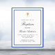 A modern, elegant and baptism invitation. A white background decorated with royal blue frames. Personalize and add a name and details. Black colored letters.