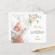 A modern and elegant baptism thank you card. A chic white background decorated with a watercolored white flower, peony, eucalyptus greenery and faux gold leaves. Personalize and add your photo of the child, thank you note and name.