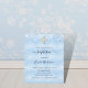 For a baptism, celebrating a baby boy. A blue faux metallic looking background. Decorated with blue faux glitter dust. Personalize and add the name and details. The name and baptism are written with a hand lettered style script