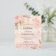 A rose gold, blush pink rustic faux metallic looking background. Decorated with rose gold and pink florals, roses, pampas grass, butterflies and a golden cross. Personalize and add a name and the details.